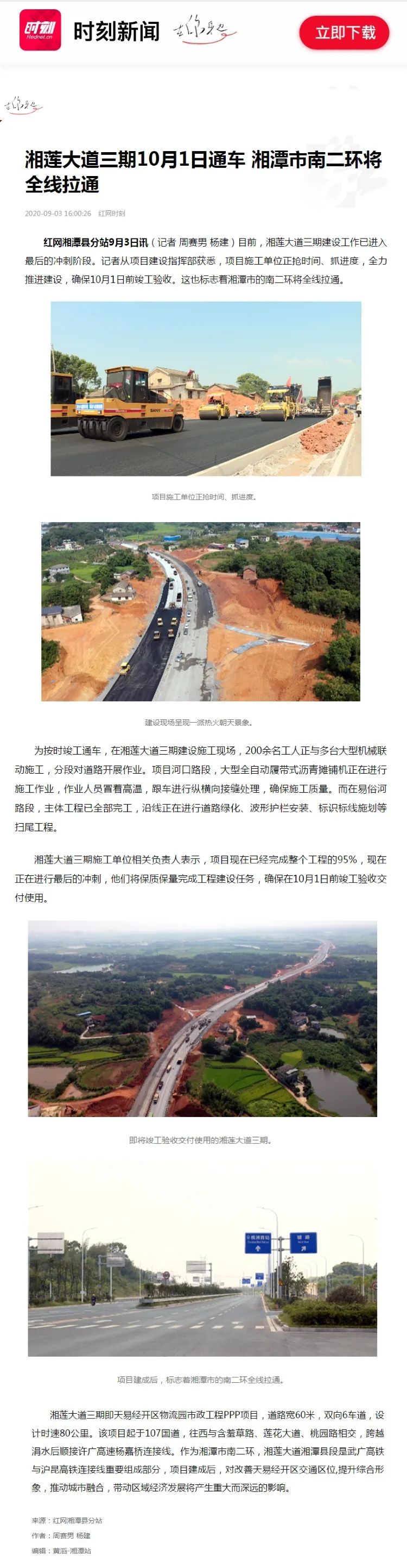 公司成網(wǎng)紅啦!紅網(wǎng)專題報(bào)導(dǎo)——我司湘潭天易示范區(qū)物流園市政工程PPP項(xiàng)目10月1日通車