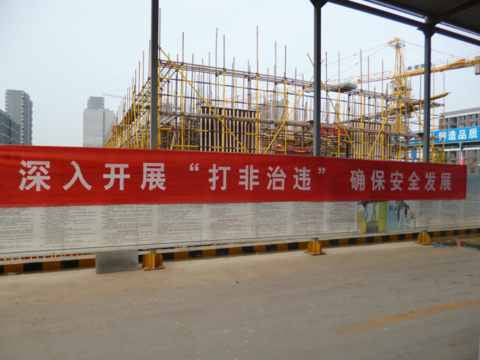 項目部組織全員開展“遵章守紀(jì)、從我做起”的安全宣傳活動,對施工現(xiàn)場進(jìn)行常態(tài)化管控和檢查,做到發(fā)現(xiàn)問題能及時整改到位,利用施工現(xiàn)場的宣傳欄、黑板報、墻報及樓層醒目位置大力懸掛和張貼“打非治違”安全宣傳橫幅標(biāo)語,采用多種宣傳形式,加大對“打非治違”工作的宣傳力度,不斷增強(qiáng)施工人員和管理人員的法律意識和安全意識。項目部以安全演講競賽等形式大力開展“打非治違”演講活動,大力開展宣傳安全基本知識,增強(qiáng)全員安全生產(chǎn)意識,在施工現(xiàn)場營造良好的安全發(fā)展氛圍,構(gòu)建和諧平安文明工地。