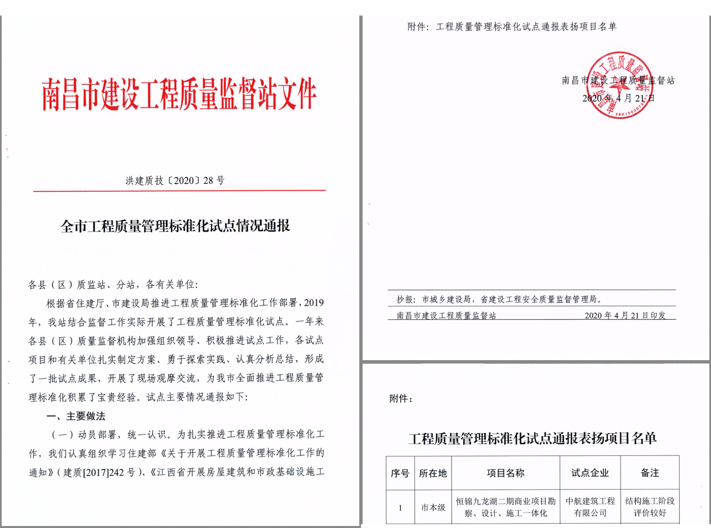 恒錦九龍湖二期商業(yè)項目繼承辦南昌市市級觀摩工地后再創(chuàng)佳績! 獲得南昌市工程質(zhì)量管理標準化試點通報表揚。