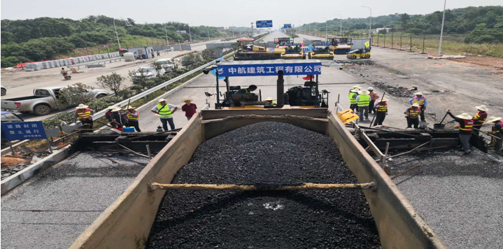 2020年5月,中航建筑天易示范區(qū)物流園市政PPP項目迎來疫情后的第二個春天,生機(jī)勃勃之景象展現(xiàn)世人:5月22日,第一階段(K12+320-K15+000)工程順利竣工驗收;5月23日第二階段的路面層瀝青混凝土開始攤鋪;5月24日,控制性工程K20+390涓水河大橋最后一片T梁架設(shè)順利落成,橋梁梁板全幅貫通。這一樁樁具有標(biāo)志性的事件如一簇簇火紅石榴花滑過被四月洗禮后的清澈天空,特別耀眼。
