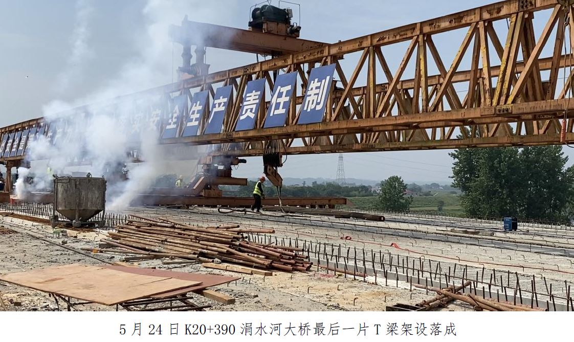 疫情之下的復(fù)工復(fù)產(chǎn),高壓下的我們?nèi)匀粓允?,我們?nèi)圆煌跣?,我們?nèi)詮娜菹蚯?,這是來自最深層固有的自信和擔(dān)當(dāng)。當(dāng)所有路燈齊開照亮,腳踏昔日為之奮斗的道路,每一盞都是你的聚光燈,它們照亮著路,也照亮著繼續(xù)前行的方向。5月22日,第一階段(K12+320-K15+000)路燈齊亮,順利通過竣工驗收,劃上句點(diǎn)。承前啟后,標(biāo)志著成功經(jīng)驗形成,5月23日,第二階段路面瀝青混凝土開始攤鋪,標(biāo)志著新起點(diǎn)、新征程、新動力匯入,擰成一股神力,繼續(xù)開疆辟土,贏取最后勝利;5月24日,K20+390涓水河大橋最后一片T梁架設(shè)落成,標(biāo)志著項目易俗河鎮(zhèn)段與河口鎮(zhèn)段成功連通,全線正式貫通,為奪取最后勝利打下堅實(shí)基礎(chǔ)。三連齊發(fā),絕非偶然,正是不屈的態(tài)度使之成為歷史的必然。鼓舞之余我們?nèi)孕杞潋溄湓辏€(wěn)打穩(wěn)扎,成功的喜悅總是掛在能笑到最后的臉上。