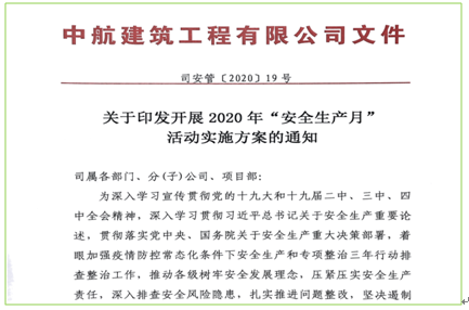 中航建筑工程有限公司2020年“安全生產(chǎn)月”活動總結(jié)