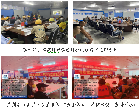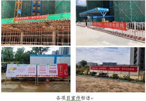 “安全生產(chǎn)月”啟動后,各在建項目積極組織開展各類安全生產(chǎn)活動,按照公司要求懸掛符合公司VI形象的“安全生產(chǎn)月”活動宣傳橫幅,粘貼安全警示標(biāo)語等形式宣傳貫徹公司關(guān)于“安全生產(chǎn)月”活動通知精神,向一線施工人員普及安全生產(chǎn)知識,積極推進安全宣傳工作,營造安全活動氛圍。過程中,各項目記錄、整理了各項安全生產(chǎn)月活動開展情況。