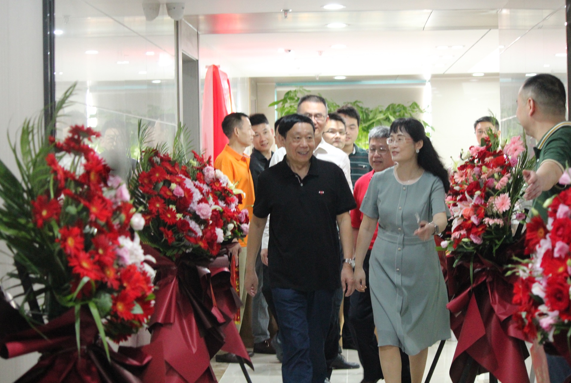 十一時(shí)十八分,伍總和譚副主席、謝校長、談總、周總一起,徐徐揭下了公司牌匾上的紅綢。
