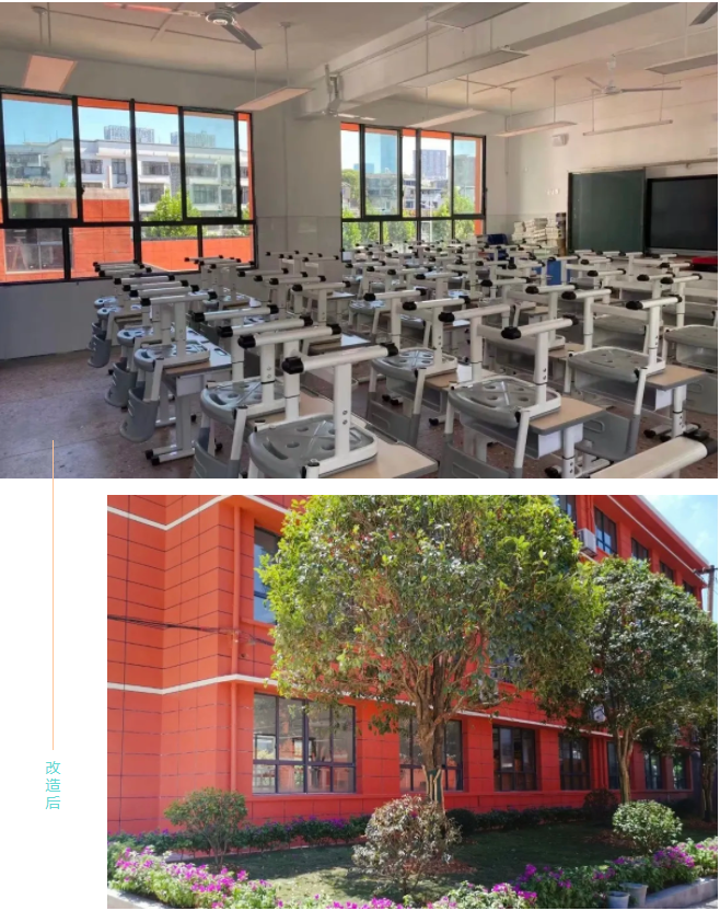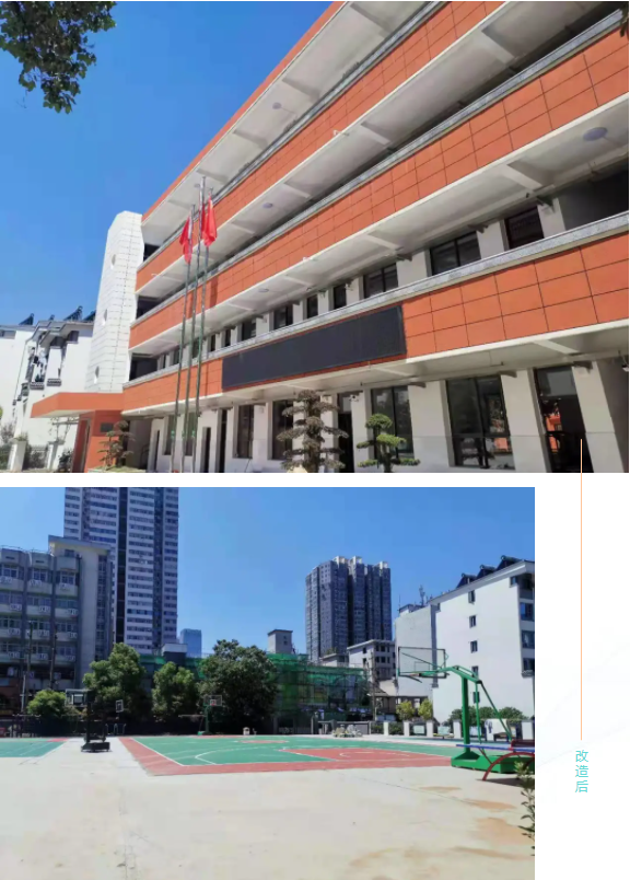 此次維修改造現(xiàn)場班組戰(zhàn)高溫、斗酷暑,歷時40余天,順利完成建設(shè)局、教育局布置的任務(wù),使得碧湘街小學(xué)舊貌換新顏。期間8月初面對突然其來的疫情,也是應(yīng)對有方案,有條不紊安排防疫、抗疫,使得施工進(jìn)度不耽誤,順利在9月開學(xué)前進(jìn)行交付使用!
