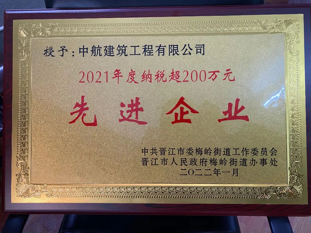恭喜公司獲得2021年度晉江市納稅先進(jìn)企業(yè)!
