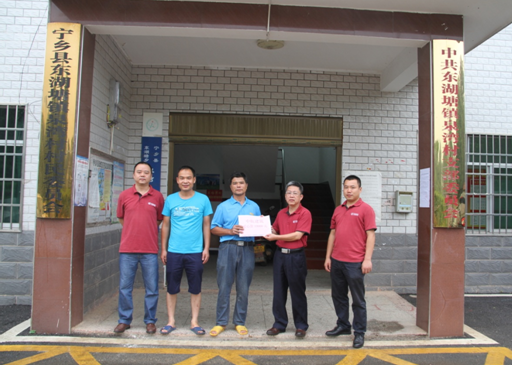 8月1日,公司總助楊意紅帶隊(duì),一行四人,帶著公司的祝福與員工的愛心,赴湖南寧鄉(xiāng)三個重災(zāi)區(qū)現(xiàn)場慰問、援助,先后到了東湖塘鎮(zhèn)泉塘灣村受災(zāi)特困戶,現(xiàn)場援助10000元;龍?zhí)镦?zhèn)七里山村,現(xiàn)場援助95000元;巷子口鎮(zhèn)黃鶴村,參與黃桃義賣活動28800元。在龍?zhí)镦?zhèn)七里山村,村支部領(lǐng)導(dǎo)表示將把公司與員工的愛心款用于修建通往龍?zhí)镦?zhèn)的唯一通道——周家沖人行橋。