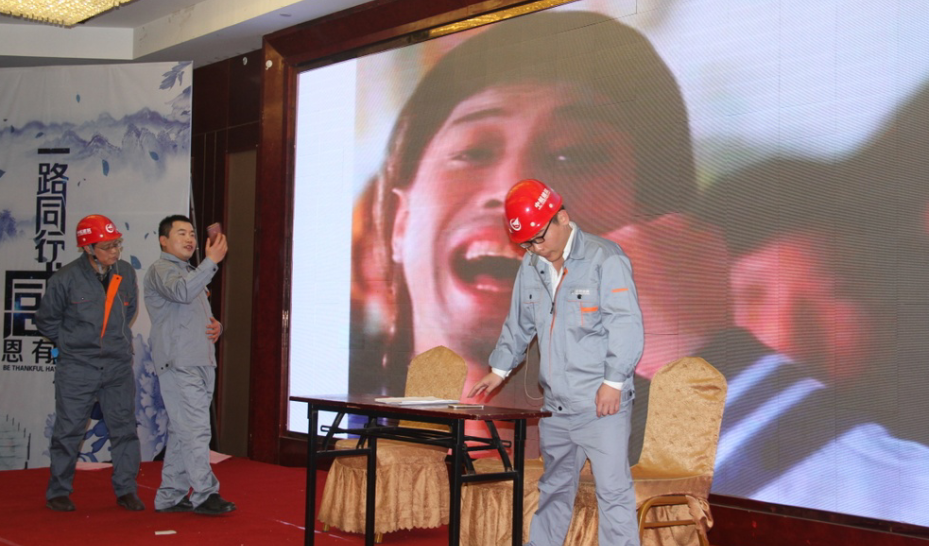 會(huì)議現(xiàn)場(chǎng)布置簡(jiǎn)單而隆重,年會(huì)在員工表演的熱舞《BOOM》中拉開了序幕。首先,公司總經(jīng)理伍倜作了年度總結(jié)報(bào)告,隨后現(xiàn)場(chǎng)表彰了年度先進(jìn)個(gè)人與集體,接下來在“不一樣的我們”之員工風(fēng)采展示環(huán)節(jié),員工自編自演的節(jié)目精彩紛呈:相聲《一定能對(duì)》以對(duì)對(duì)聯(lián)的形式,展示了一年了公司項(xiàng)目建設(shè)的成績(jī),小品《安全生產(chǎn)大過天》以詼諧幽默的語言,豐富夸張的動(dòng)作,把安全生產(chǎn)深入人心。歌舞《一攬芳華》《我相信》也贏得了滿堂喝彩。