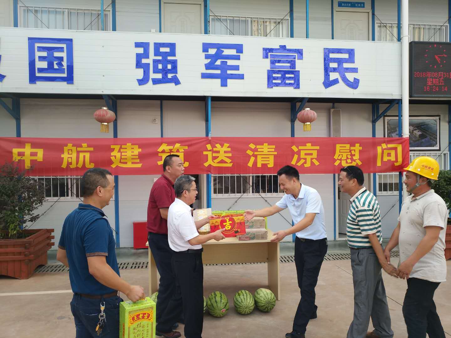 2018年8月31日,公司工會主席楊意紅赴江西南昌九龍湖項目“送清涼”,將防暑藥品、解暑飲品以及生活必備品等物資,送到了頂著烈日工作的建筑工人及現(xiàn)場管理人員的手中,給一線的建設(shè)者們送上了公司的慰問和關(guān)懷。