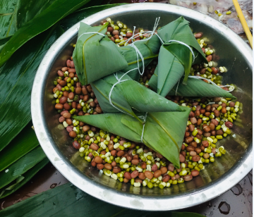 呼吸著粽香,耳旁仿佛回蕩著兒時的歌謠“桃兒紅,杏兒黃, 五月五,是端午;葦葉香,飄滿堂,粽葉香,包五糧;剝個粽子裹上 糖,幸福生活萬年長” 。兒時的粽子就是白白胖胖的,沾著白糖, 滿口香甜。這次準備的餡料,除了白糯米,還有臘肉、蛋黃、香腸、 紅豆、綠豆等多種口味。看著自己親手包的粽子,感覺這個端午節(jié)都 變得不一樣了。