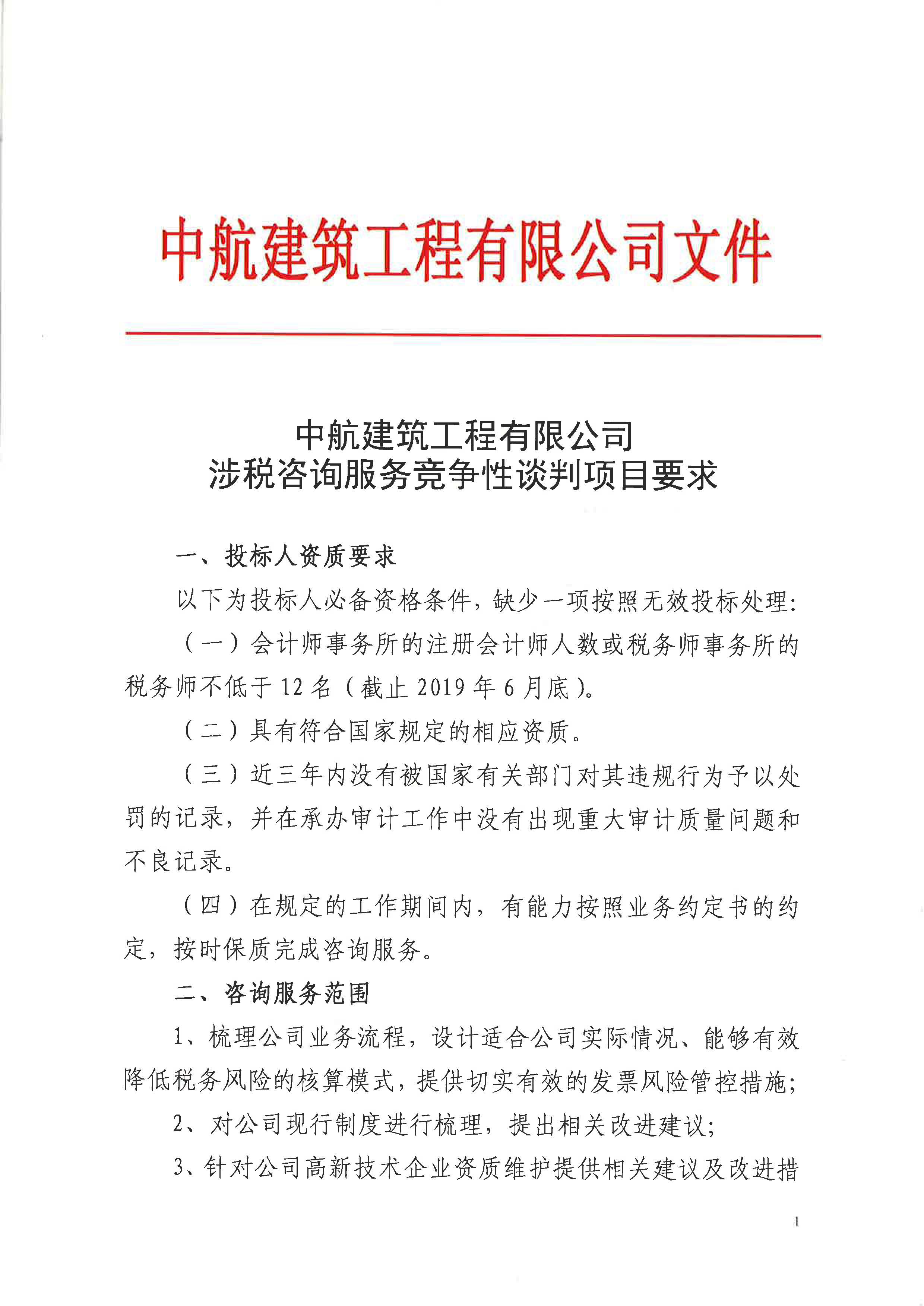 中航建筑工程有限公司涉稅咨詢服務(wù)競爭性談判項(xiàng)目招標(biāo)公告