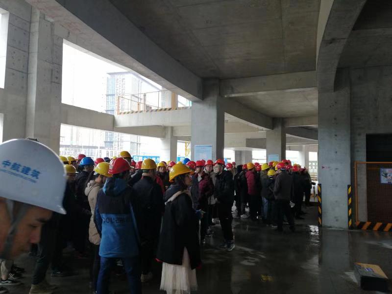 恒錦九龍湖二期項目總工程師林海組織各部門的管理骨干,向這群青春洋溢的客人們詳細講解了工程特點及主要工序實施細則,從安全生產到質量創(chuàng)優(yōu)等各個方面都給全體同學提供了一次非常好的學習機會。項目現(xiàn)場的規(guī)范化施工和精細化管理給到場的師生留下了深刻印象。
